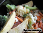 - Ассорти овощное (замороженное или свежее: картофель, морковь, цветная капуста, брокколи, чеснок, перец сладкий) — 400 г