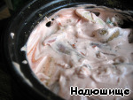 Сметанный соус я приготовила отдельно: просто смешала в емкости сметану и томатный соус.