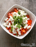 Перемешать с нарезанной мелко петрушкой. Сбрызнуть оливковым маслом и уксусом. Посолить и поперчить по вкусу.