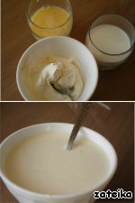 Тесто и начинку необходимо остудить. Для экономии времени я это делала на балконе - остыли, пока я готовила заливку: а именно смешала сыр, яйца и молоко. О сыре: в оригинале для заливки использовался сыр Фета, однако я его не просто не люблю, а терпеть не могу (извините), пробовала по-разному: и с брынзой рассольной, и с адыгейским сыром, и прочая-прочая. Но больше всего мне понравилось для этого дела использовать Филадельфию… Заливки как видите, получилось много, ничего страшного.