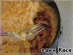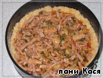 Несколько замечаний по самому рецепту. В исходном варианте мясо было не указано - сырое или нет. Но время обработки показалось мне недостаточным. Поискав в интернете рецепты, я поняла, что мясо должно быть вареное. Я решила пожарить до полуготовности. Тушеные помидоры я не люблю, поэтому не стала их добавлять. Ветчина - тоже непонятно какая. Я взяла ту, которая продается у нас, но блюдо пахло сосисками... Видимо имеется в виду какая-то другая, итальянская ветчина, натуральная. Вот такие изменения претерпел рецепт.