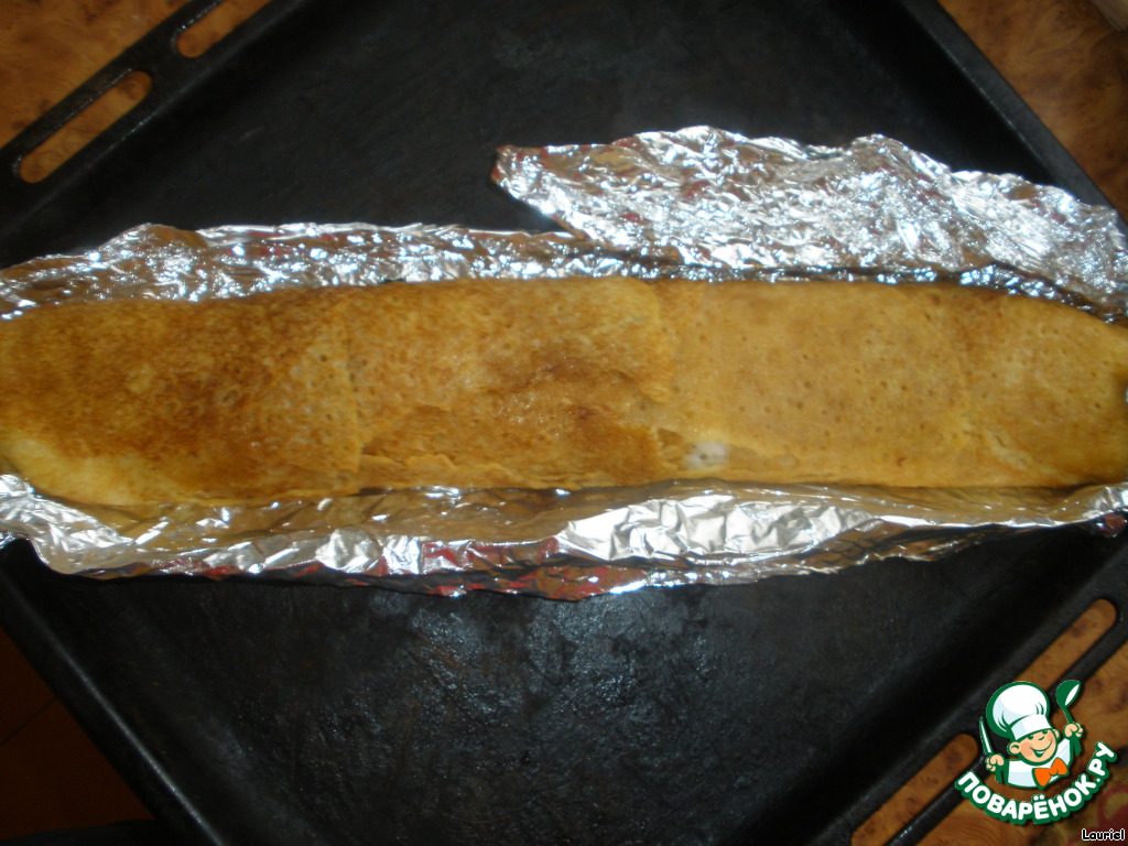 • Теперь осторожно, с помощью фольги, свернуть рулет.