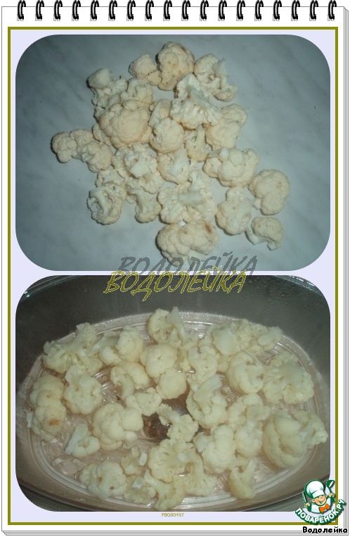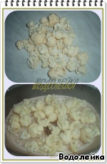 Цветную капусту разобрать на мелкие соцветия (вес капусты дан в разобранном :):):) виде) и отварить до полуготовности.