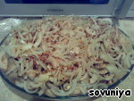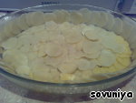 Форму для запекания смазываем сливочным маслом и начинаем укладывать слоями.