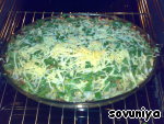 Через 40 минут посыпать зеленью и сыром - лучше всего для этой цели подойдёт пармезан, который хорошо плавится и даёт дополнительную сливочную нотку. У меня сыр Российский, да и того почти не оставили набежавшие голодные гости.