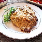 только, к сожалению, не получилось у меня мясо так кармашком красиво разрезать, выложила просто мясо, а начинку сверху, но тоже очень вкусно, отличное сочетание!