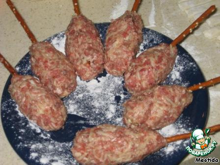 Берем в руки соломку и с одной стороны нанизываем фарш