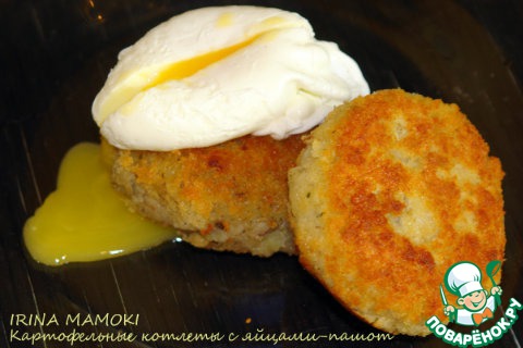 Рецепт "Котлеты картофельные с копчeной рыбой и яйцами-пашот":