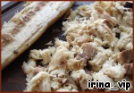 Рыбу вынуть, очистить от кожи, удалить кости и нарезать её достаточно крупно. |