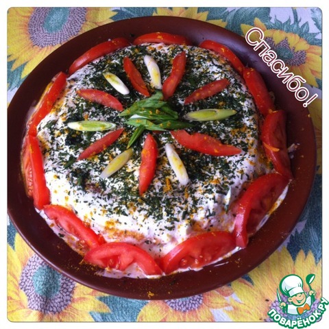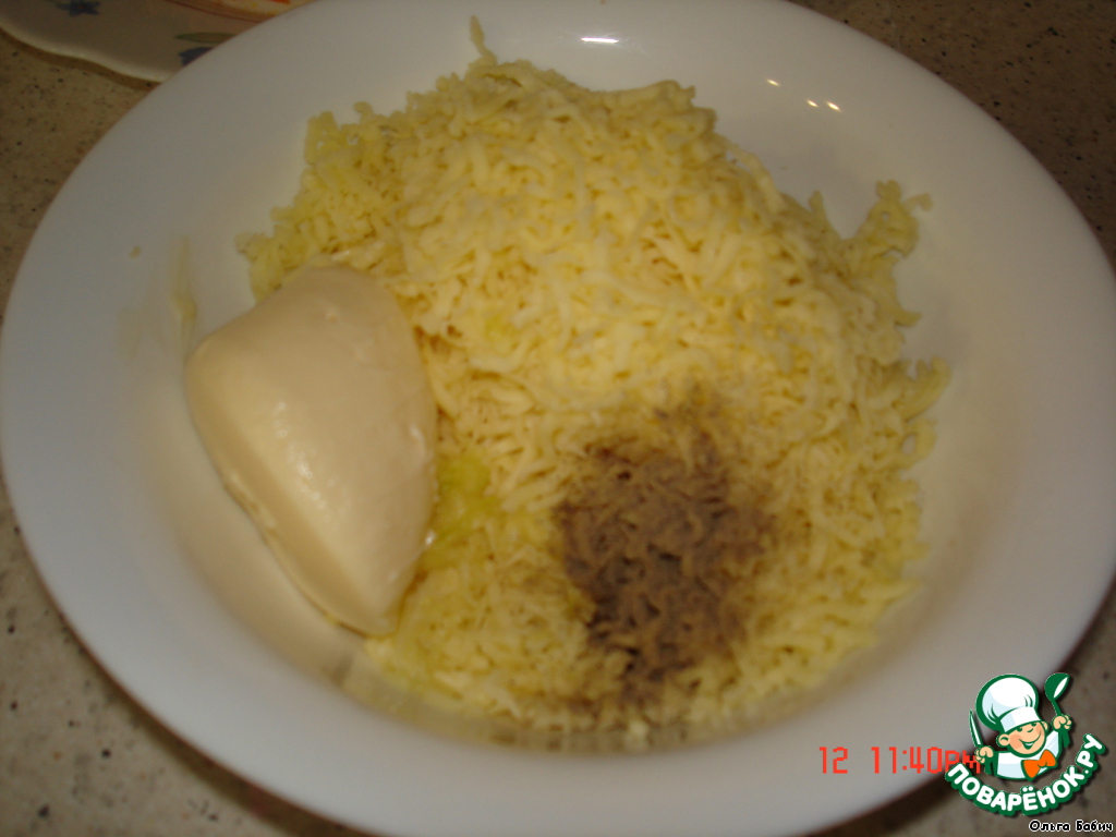 2)если нет майонеза то чем пропитывается тортик? И что там в тарелочке с сыром лежит такое беленькое, не ужели чесночёк?