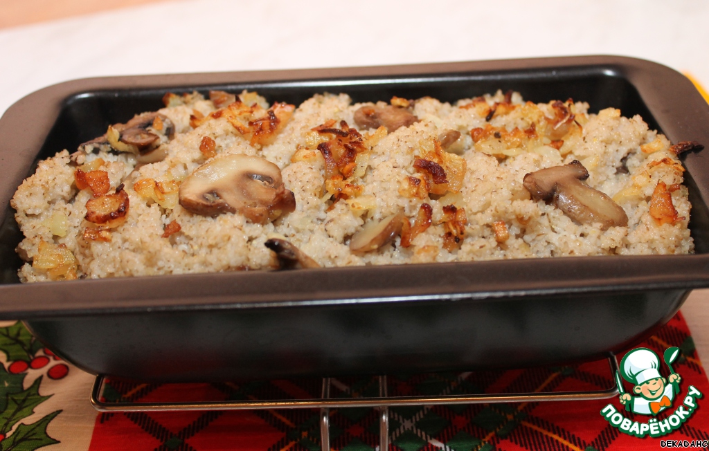 Выложить кашу в форму для запекания и поставить горячую в духовку. Запекать при температуре 200 градусов до золотистости.