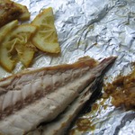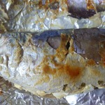 Заворачиваем тушки в фольгу так: беру фольгу в два раза длиннее рыбы, рыбу кладу посерединке, скручиваю, а концы заворачиваю под нее, чтобы рыбка лежала на двойной порции фольги.