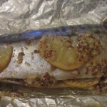 На 2 рыбины положила такой маринад: пучок мелкорубленой петрушки, сок 1\2 лимона, 1 ст.л горчицы, 3 дольки чеснока, 1 ст.л. соевого соуса. Немного желатина. Разрезала пакет для запекния и в него этот рулет туго завернула. Даже времени не было для маринования. Готовила в мульте на режиме тушение 1 час, предварительно налив на дно 1 стакан воды.
