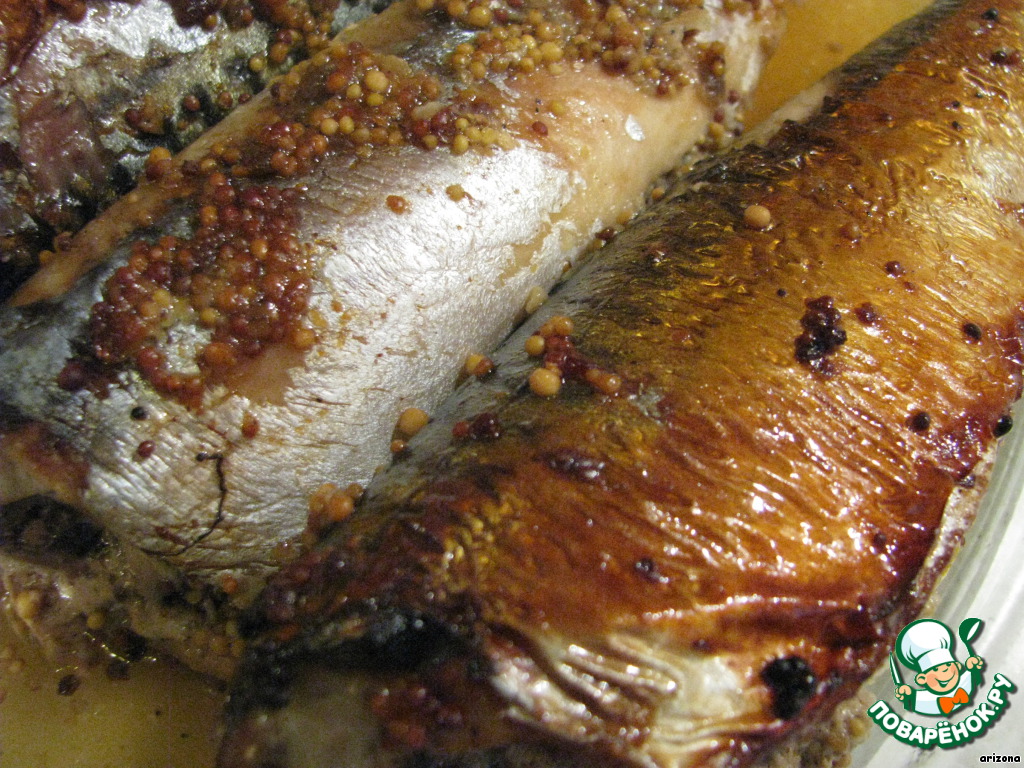Делаем маринад: смешиваем горчицу со специями и с пропущенным через пресс чесноком. Обмазываем тушки маринадом (особенно внутри), по желанию закладываем дольки лимона в брюшко и оставляем мариноваться. Определенного времени нет, но чем дольше рыбка постоит - тем вкуснее она будет.