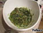 Делаем соус: болгарский перец, лук, чеснок, укроп пропускаем через мясорубку, заливаем сливками и даем немного настояться.