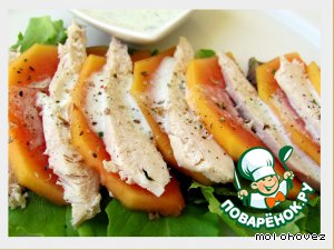 Рецепт "Салат из папайи и куриного филе под пармезановым соусом":