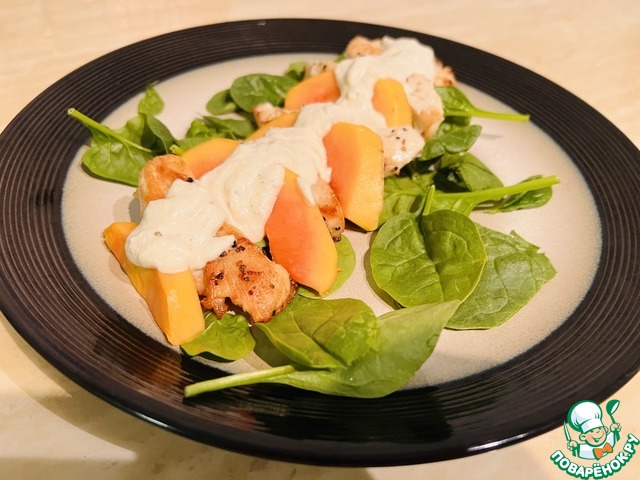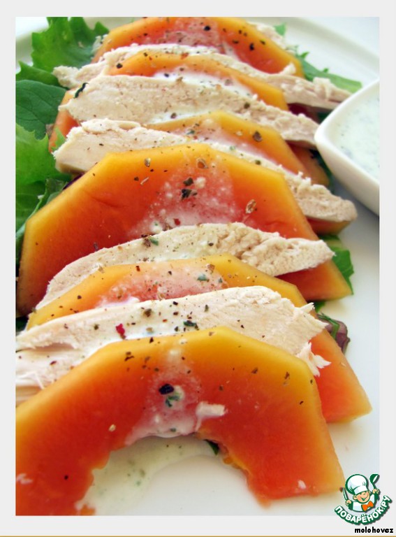 Рецепт "Салат из папайи и куриного филе под пармезановым соусом":