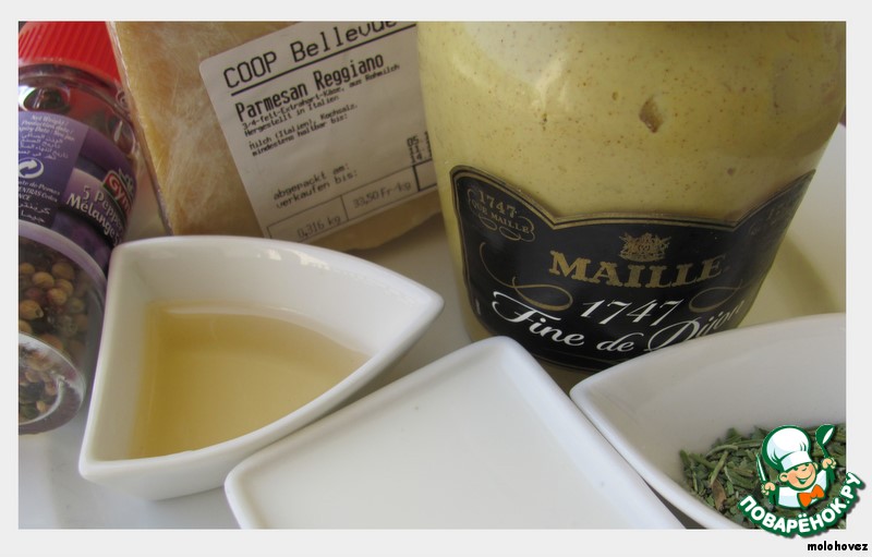 Для соуса нам понадобиться тертый пармезан, йогурт, оливковое масло, сок лимона или винный уксус и орегано. Соль, перец по вкусу. |