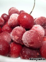 Духовку предварительно нагреть до 180 градусов, а вишню разморозить, дать стечь соку и немного присыпать крахмалом.