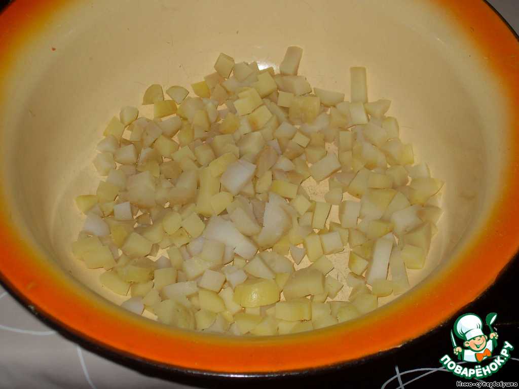 Картофель очистить и нарезать кубиками.