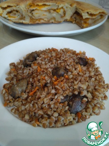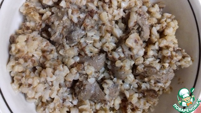 Рецепт "Каша гречневая с куриными сердечками "Портовая"":
