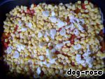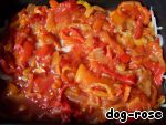 Выкладываем все ингредиенты слоями в сковороду или форму с высокими бортиками. Порядок выкладки: