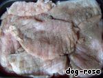 5 слой: куриное филе. Предварительно его отбиваем, солим и перчим по вкусу. (Я всегда отбиваю ножом, поэтому, может, выглядит несколько непривычно).
