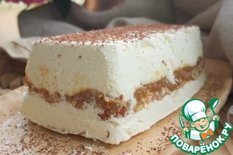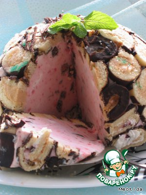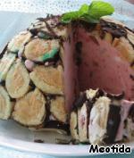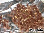 Горячим острым ножом (нужно сначала нож подержать под струей горячей воды, потом насухо вытереть) нарезаем десерт на кусочки