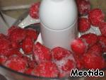 Клубнику с помощью блендера или комбайна превращаем в пюре, размораживать заранее ее не надо