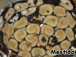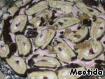 Сверху выкладываем кружочки нарезанных мини-рулетиков,