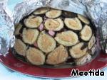 Стеклянную куполообразную (круглую) форму застилаем фольгой и покрываем стенки нарезанными кружочками мини-рулетиков