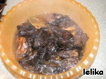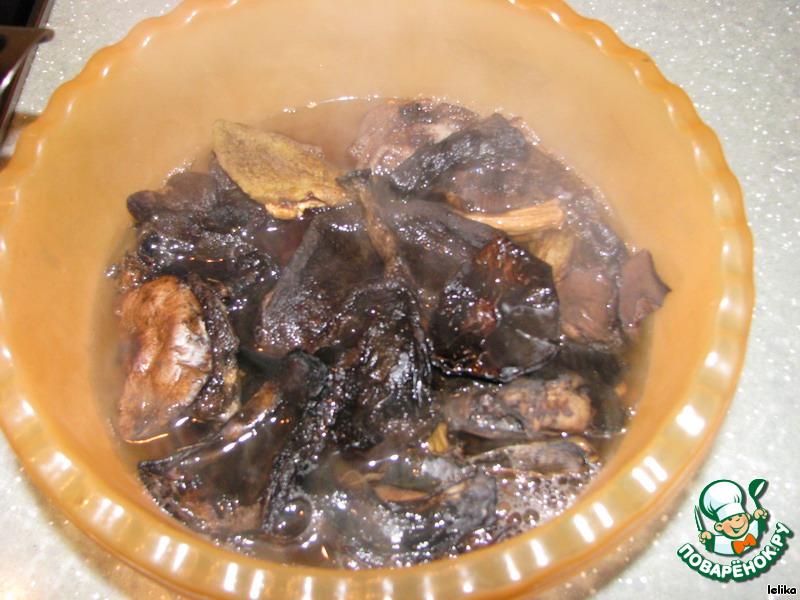 Прежде всего займемся грибами: зальем их кипятком, закроем крышкой и оставим размягчаться