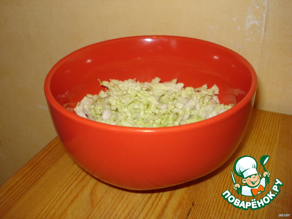 Довольно мелко порезать пекинскую капусту.