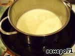 Сливки довести до кипения и постепенно влить во взбитые желтки,