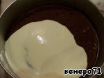 • Заливку немного остудить, хорошо смазать ею верх и бока торта.