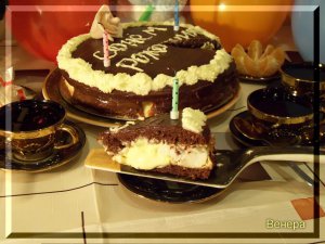 Я попала на Поваренок совсем случайно (искала какой-то рецепт). Мне сразу здесь понравилось, я стала заходить в гости каждый день. Сколько рецептов - аж глаза разбежались, хотелось все испробовать. Многому научилась, конечно, не все сразу получалось, и Москва не сразу строилась. Многие рецепты навсегда поселились в моей семье. Дорогие поварята, мне с Вами тепло и уютно. Очень рада, что мне выпала возможность этим скромным тортиком поздравить Любимый сайт с Днем Рождения!!! Долголетия и процветания!!! Желаю на сайте теплоты, В делах - преуспевания, Большого счастья, долгих лет И море обожания! Иметь все нужное всегда, Жить с явным наслаждением. В своем кругу, среди друзей Отметить ДЕНЬ РОЖДЕНИЯ!!! На конкурс "Поздравь Поварeнка с трехлетием!" Торт по вкусу похож на Киндер Делис, который так любят дети. Шоколадные коржи со сливочно-заварным кремом в шоколадной глазури.