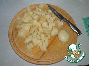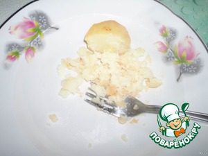 Когда картошка окончательно сварится, вынимаем целую картошину, разминаем ее вилкой и снова отправляем в кастрюлю.