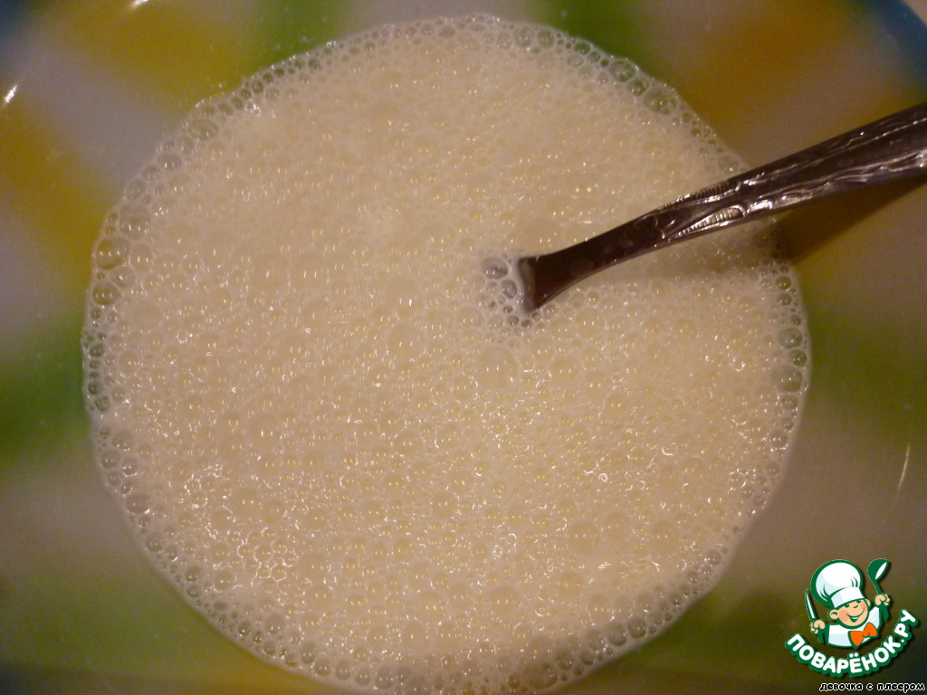 Добавить к этой смеси молоко, хорошо перемешать.