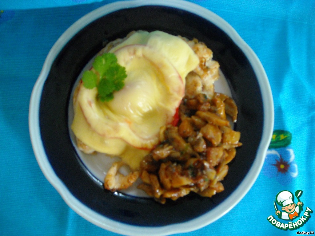 Рецепт этого блюда был размещeн на сайте в 2008 году пользователем Nika76 и иллюстрирован мной в рамках акции "Раскраски". Получилось вкусно, в рецепте ничего не меняла, только количество ингредиентов подбирала сама, так как в самом рецепте они не были указаны. Куриные отбивные получились мягкими и сочными, перец придал нарядный вид, а грибной соус добавил изысканности. Спасибо автору!