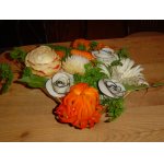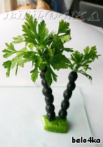 Умница, замечательно - красиво. Если есть еще чем поделиться, очень буду рада перенять ваши фантазии. Успехов вам! Я такую пальмочку делаю с кроной из перьев зеленого лука, перышки разрезать вдоль на 4 полоски, только снизу, начиная разрезать, отступить от края 0,5-1,0 см и положить на несколько времени в холодную воду, полоски закручиваются и получается очень интересно
