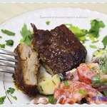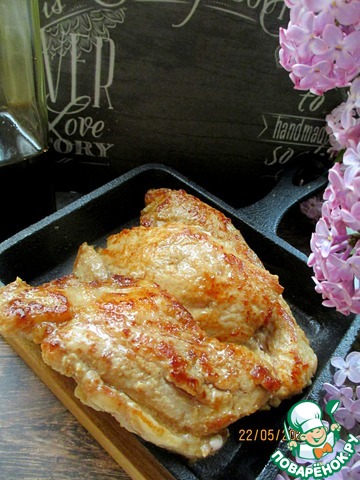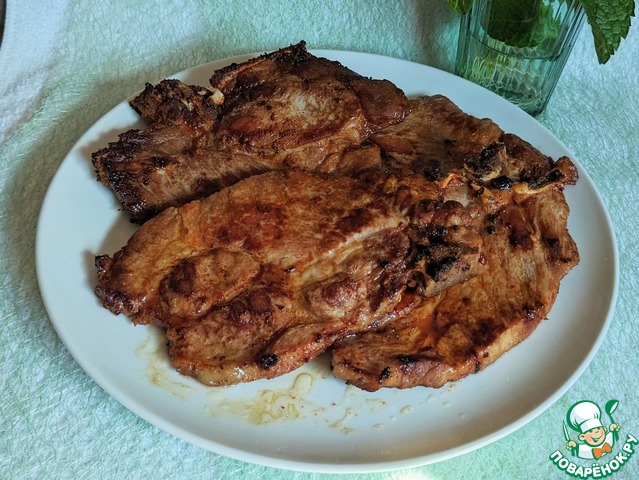 Достаем мясо из маринада и обжариваем с двух сторон в масле, примерно по 3-4 мин. на каждую сторону.