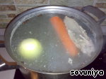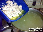 Готовим бульон на косточке из куриной грудки, залив её холодной водой /3-3,5 литра/.