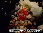 Острый перец очистить от семян, мякоть нарезать мелко. Разогреть 1 ст. л. растительного масла и потушить в нем лук, чеснок и перец. -