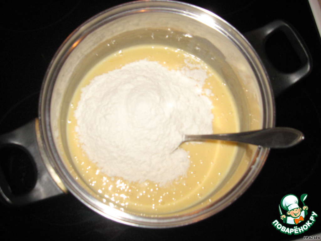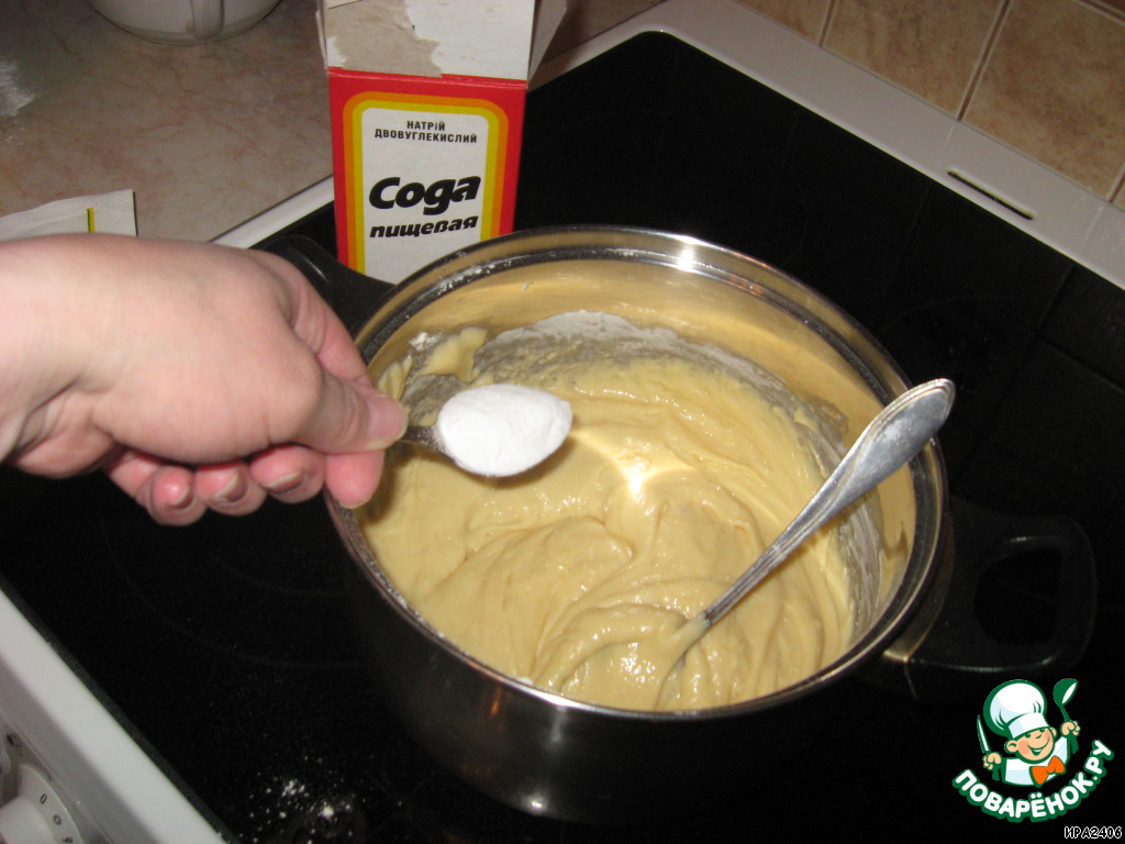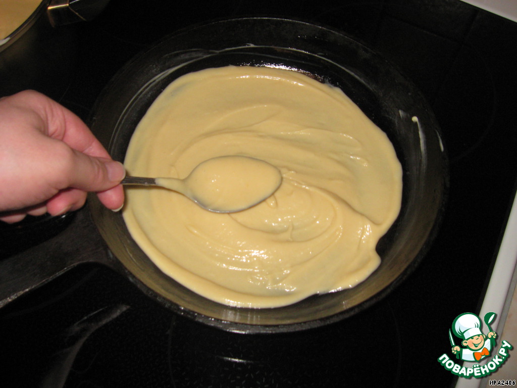 Делим тесто на 4 части и кажую часть в отдельности выпекаем на смазанной слив.маслом форме в духовке.Получится 4 коржа золотистого цвета