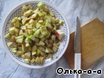 Яблоки очистить от сердцевины и нарезать мелкими кубиками (должна получиться полная глубокая тарелка).