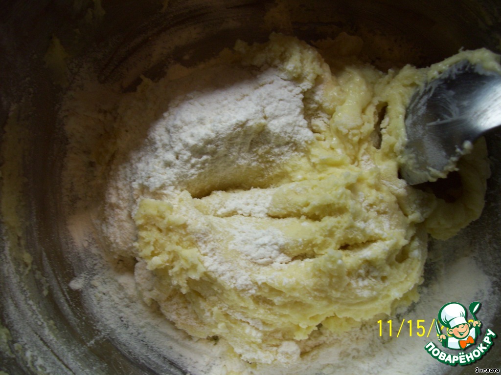 всыпаем муку. Я брала примерно 5/6 стакана и еще добавила ванилин на кончике ножа. Перемешиваем.