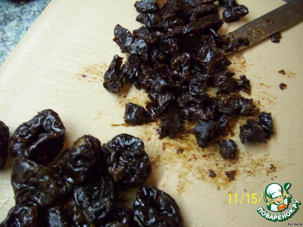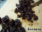 Чернослив нарезаем кусочками, размером с изюминку, примерно.