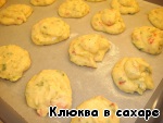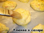 Разогреваем духовку до 180 градусов, выстилаем противень пекарской бумагой, слегка смазав её сливочным маслом. Выкладываем картофельную массу небольшими «блинчиками» на расстоянии около 2 см друг от друга.