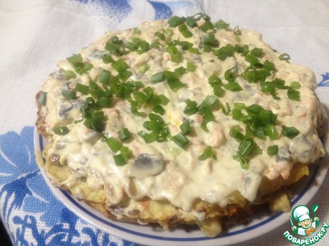 Рецепт «Закусочный торт из рыбных блинчиков»:
