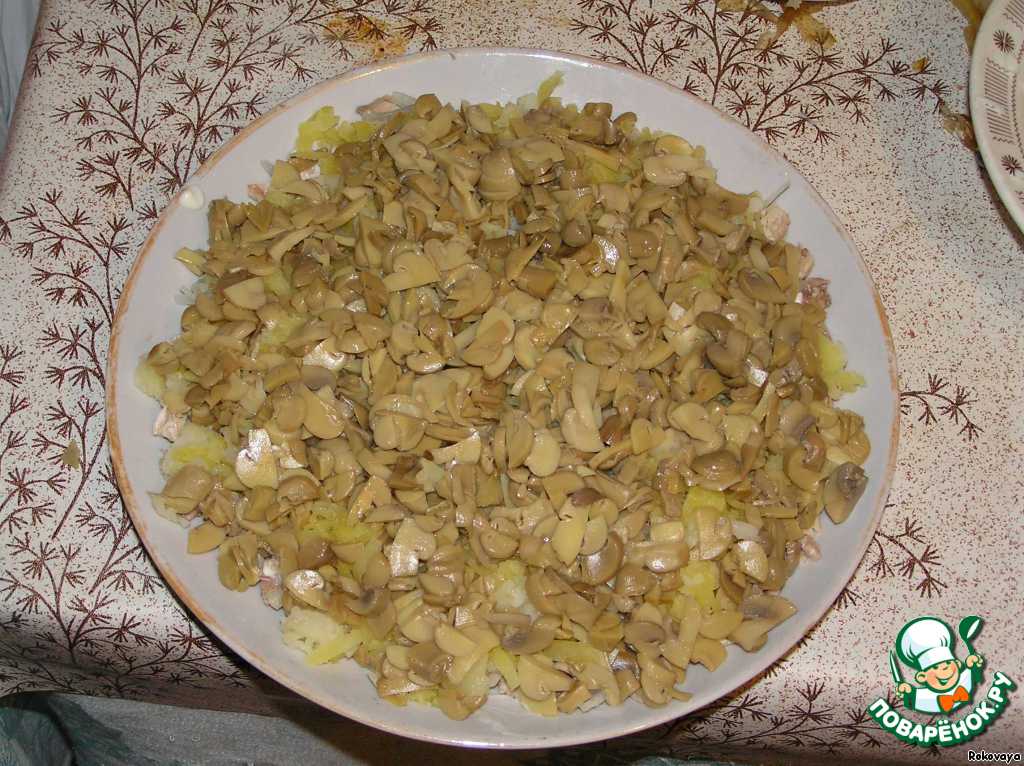 - Грибы (отварные, я беру шампиньоны) — 200 г